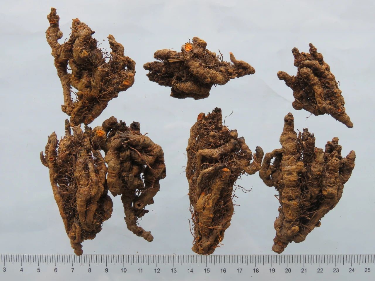 本品为毛茛科植物黄连Coptis chinensis Franch.、三角叶黄连Coptis deltoidea C.Y.Cheng et Hsiao或云连Coptis teeta Wall.的干燥根茎。以上三种分别习称“味连”、“雅连"、“云连”。秋季采挖,除去须根和泥沙,干燥,撞去残留须根。